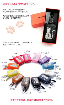 デザイン ストーンカラーが選べる デザインデコ スマートキーケース(全12色)スワロ デコ スマートキーカバー トヨタ ホンダ 日産 スズキ ダイハツ マツダ スバル 三菱キーケース スマートキー 猫 ネコ キャット ブランド レディース かわいい おしゃれ